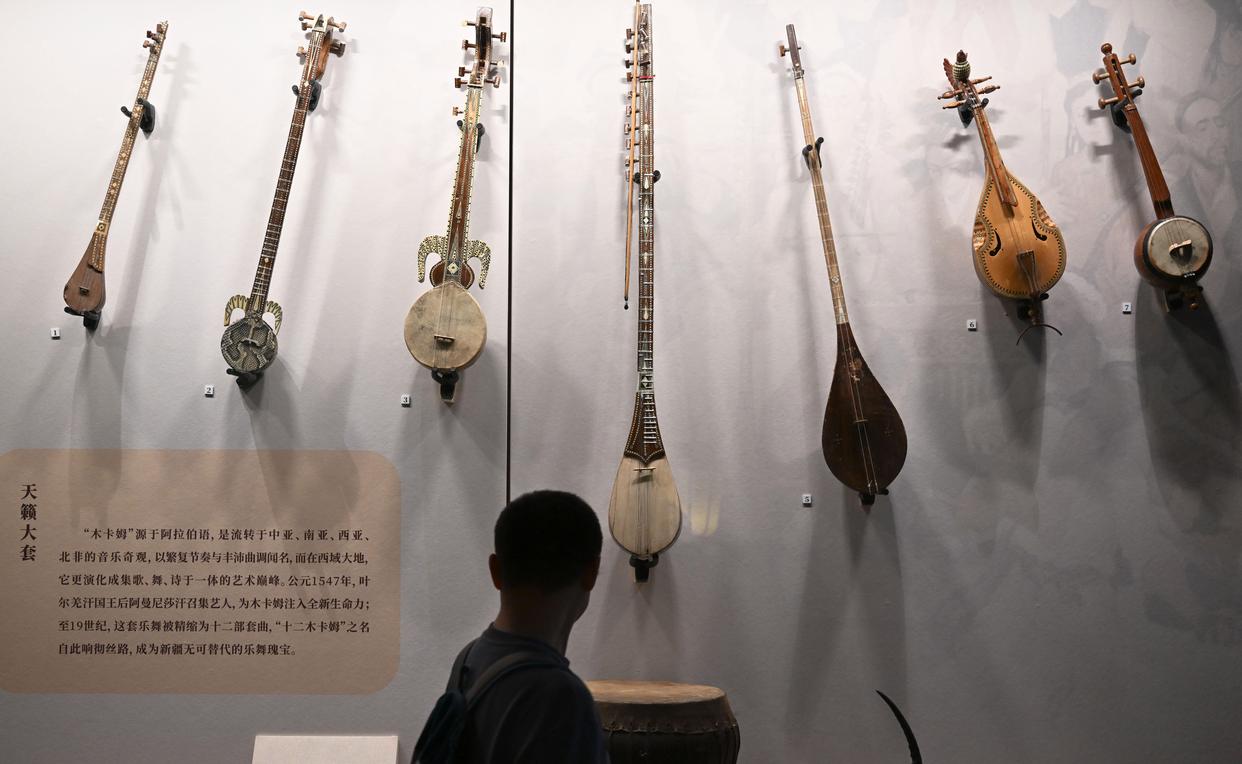 11月29日,参观者观看展出的乐器木卡姆。新华社记者 邓华 摄