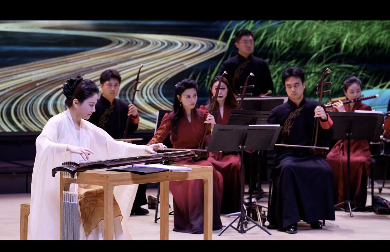 音乐会上,复刻春秋古制的古琴与珍稀老琴同台亮相。古琴演奏家路宁携手中央民族乐团演奏家们,以《源》《神游》《清泠》《醉枕石》《云水吟》等8首全新编创作品为纽带,让古琴清微淡远的音色与大运河“流动史诗”的气质深度相融,完成跨越时空的对话。