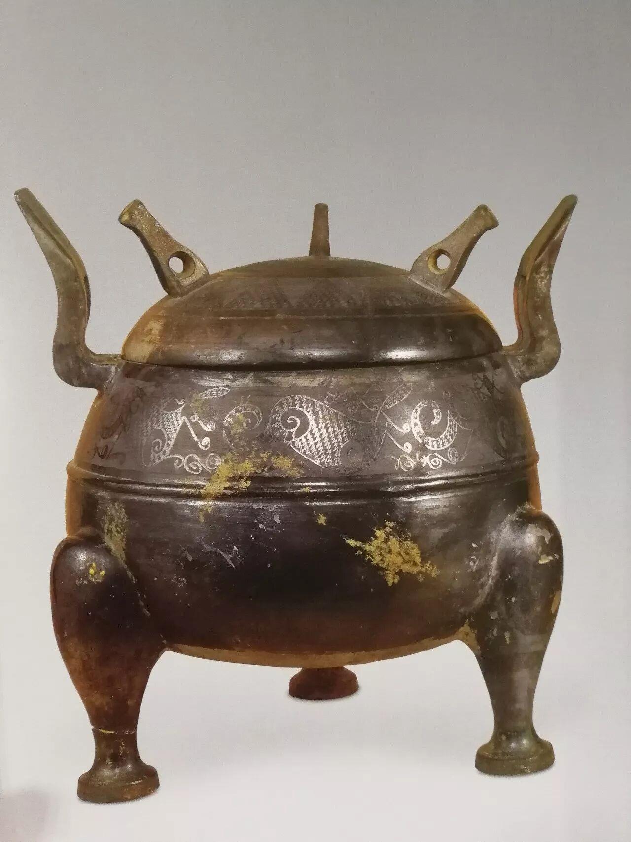 △战国磨光压划纹黑陶鼎 河北博物院展出 河北省文物考古研究院藏