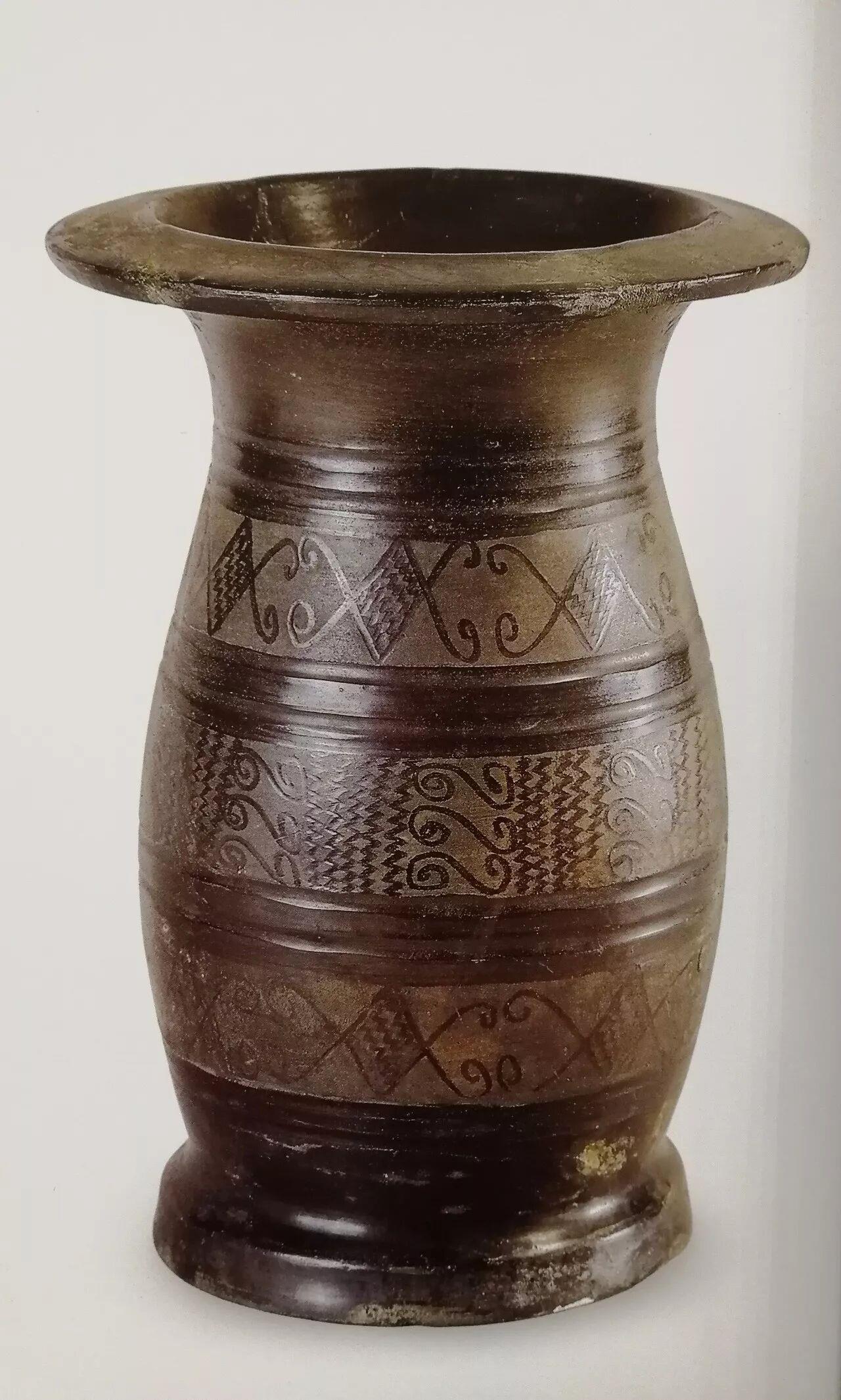 △战国磨光压划纹黑陶筒状器 河北博物院展出 河北省文物考古研究院藏