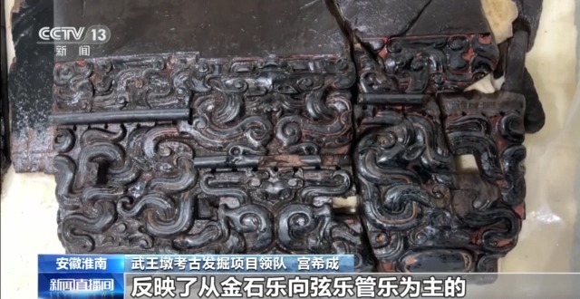 武王墩考古发掘项目领队 宫希成:过去以金石乐为主,所谓金石乐就是以编钟编磬为主调的礼乐制度。比方说曾侯乙墓里边有不少的瑟,但是像武王墩量这么大,而且种类还这么齐全,还是第一次,反映了从金石乐向弦乐管乐为主的变化。