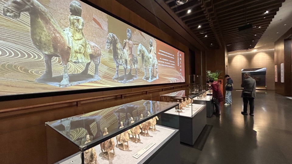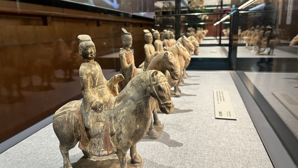 “他们骑着马整齐列阵,很有氛围。”来自山西的观众赵女士在展柜前仔细观察,栩栩如生的陶俑,令人仿佛亲眼看到行进中的仪仗,耳闻鼓乐之声。展陈地点位于中国考古博物馆二层。