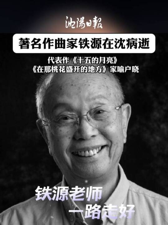 12月29日,据沈阳日报报道,著名作曲家铁源在沈阳因病逝世,代表作《十五的月亮》《在那桃花盛开的地方》家喻户晓。