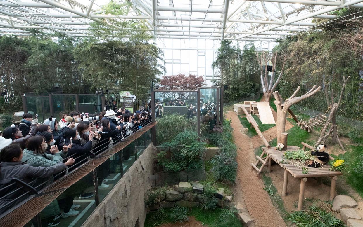 2024年3月3日,韩国民众在龙仁市的爱宝乐园观看大熊猫“福宝”。新华社记者 姚琪琳 摄
