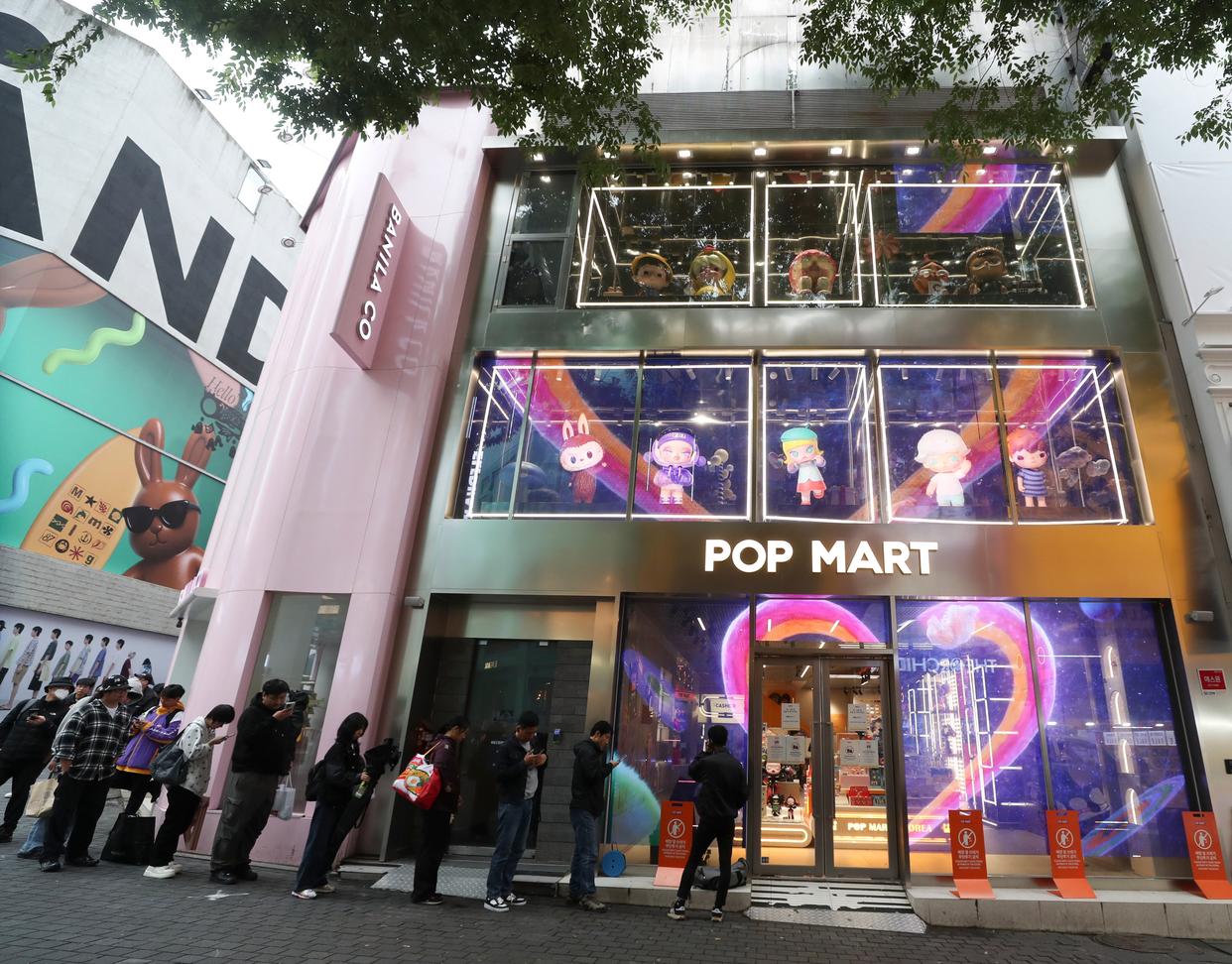 2025年5月20日,消费者在韩国首尔明洞街区的泡泡玛特店面前排队。新华社记者 姚琪琳 摄