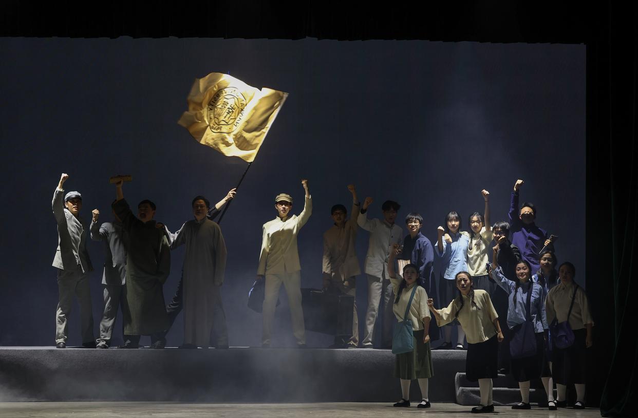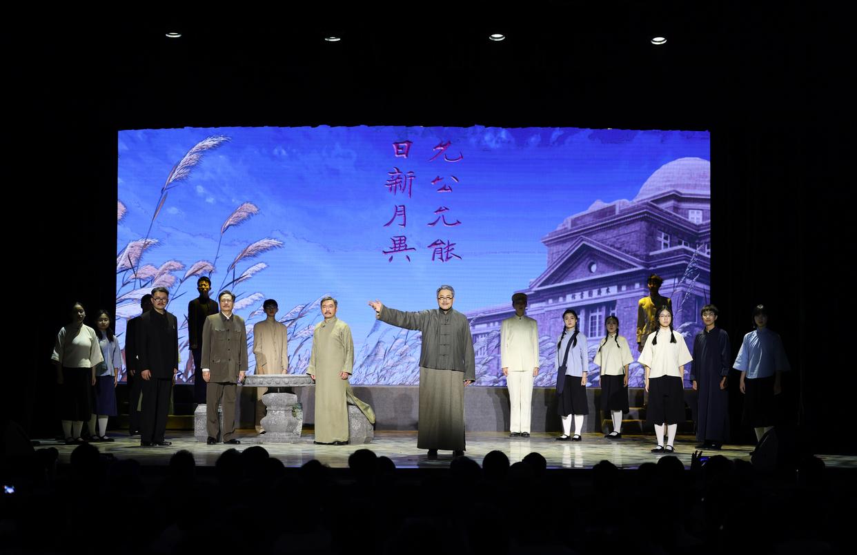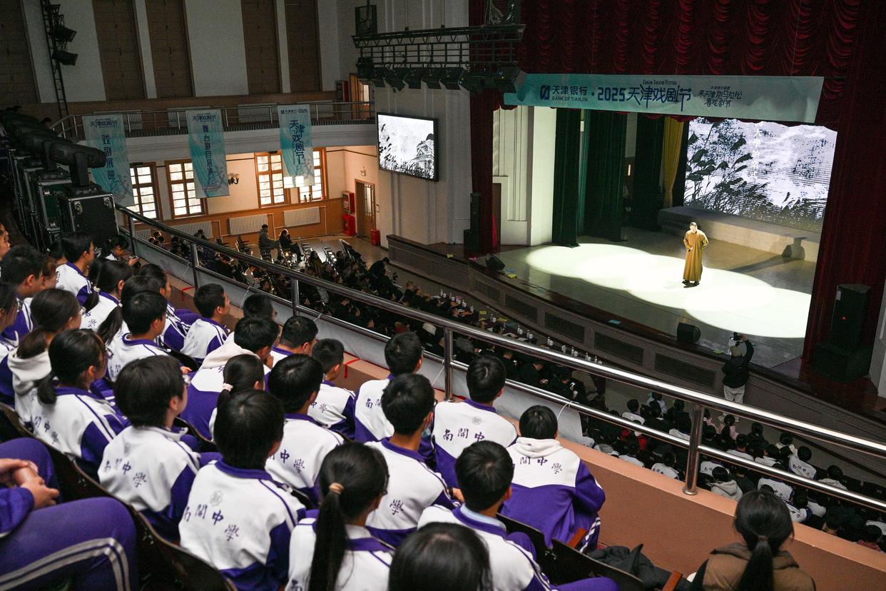当日,2025天津戏剧节闭幕式在天津南开中学举行。天津人民艺术剧院的表演者携话剧《爱国三问》走进南开中学校园,师生在话剧表演中重温南开老校长张伯苓的“爱国三问”——你是中国人吗?你爱中国吗?你愿意中国好吗?