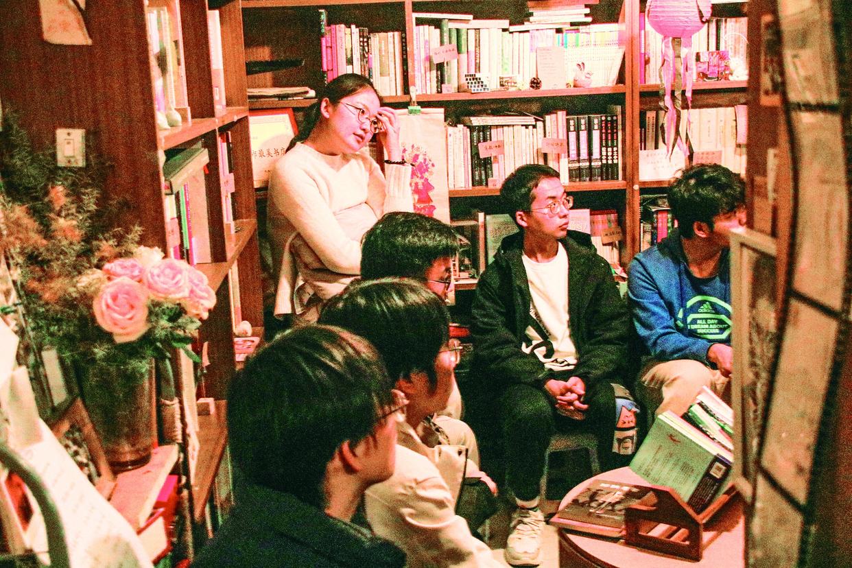 荒岛书店里的沙龙活动现场。 作为“荒岛”第六任店长,Coco尤其注重书店每周的“荒谈”沙龙活动。在她看来,这能够集中体现出“荒岛”的意义。“我们真的想为社会做点什么。我看到很多人感到孤独和困惑,但是找不到人倾诉。我也看到,两代人之间可能有某种无法沟通的情况。”