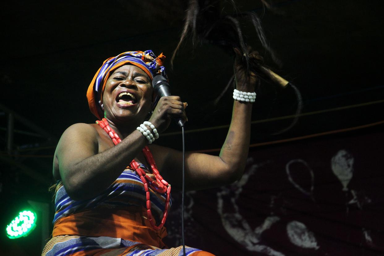 1月16日,一名表演者参加在贝宁南部城市维达举办的阿戈戈国际舞蹈节开幕式。新华社发(塞拉芬摄)