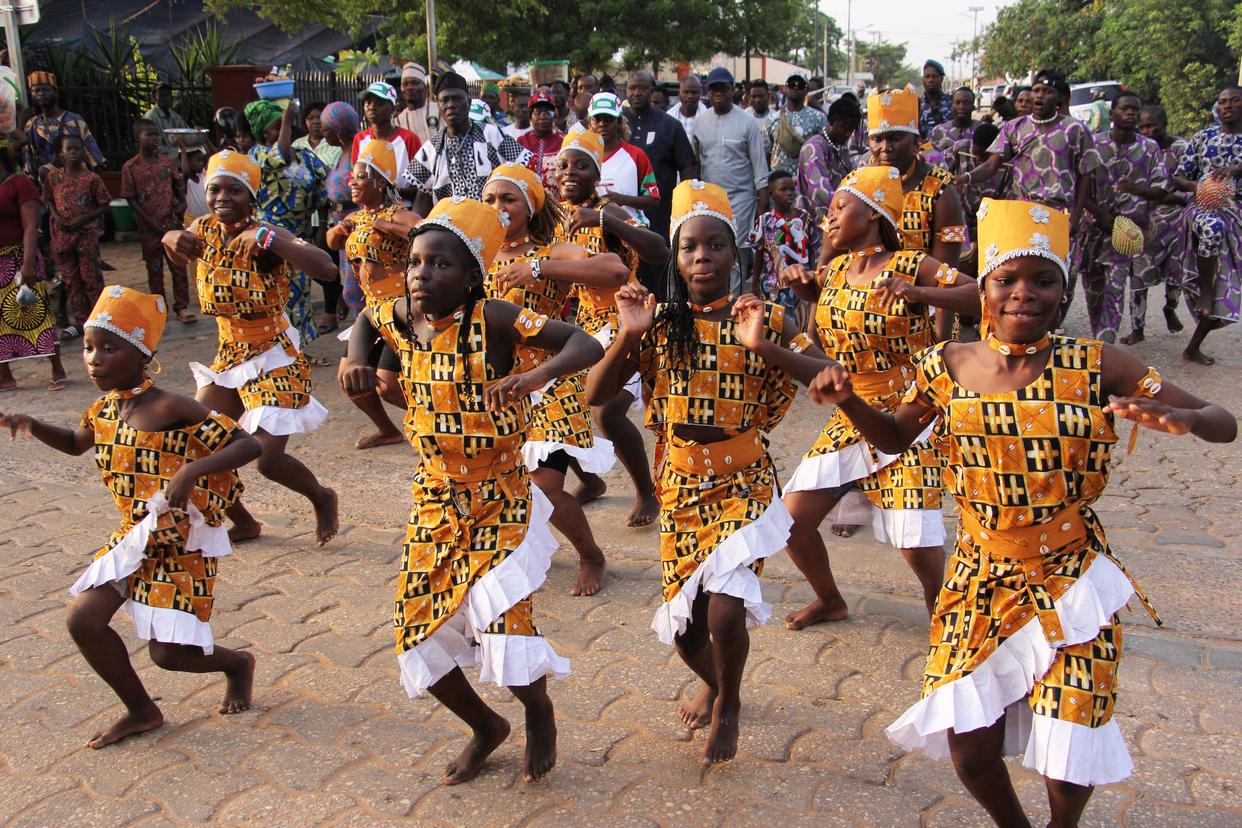 1月16日,表演者参加在贝宁南部城市维达举办的阿戈戈国际舞蹈节开幕式。新华社发(塞拉芬摄)