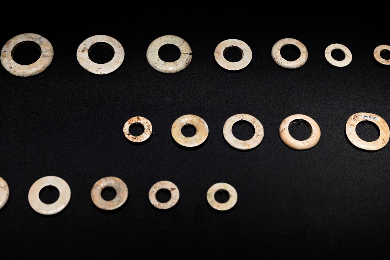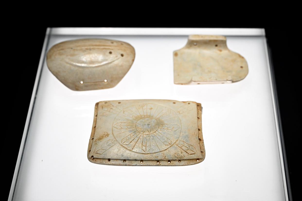这是凌家滩遗址博物馆内展出的玉器(2025年12月24日摄)。以玉为美、以玉为贵