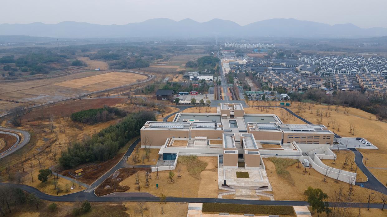 这是位于安徽省马鞍山市含山县的凌家滩遗址博物馆(2025年12月21日摄,无人机照片)。遗址自发现以来