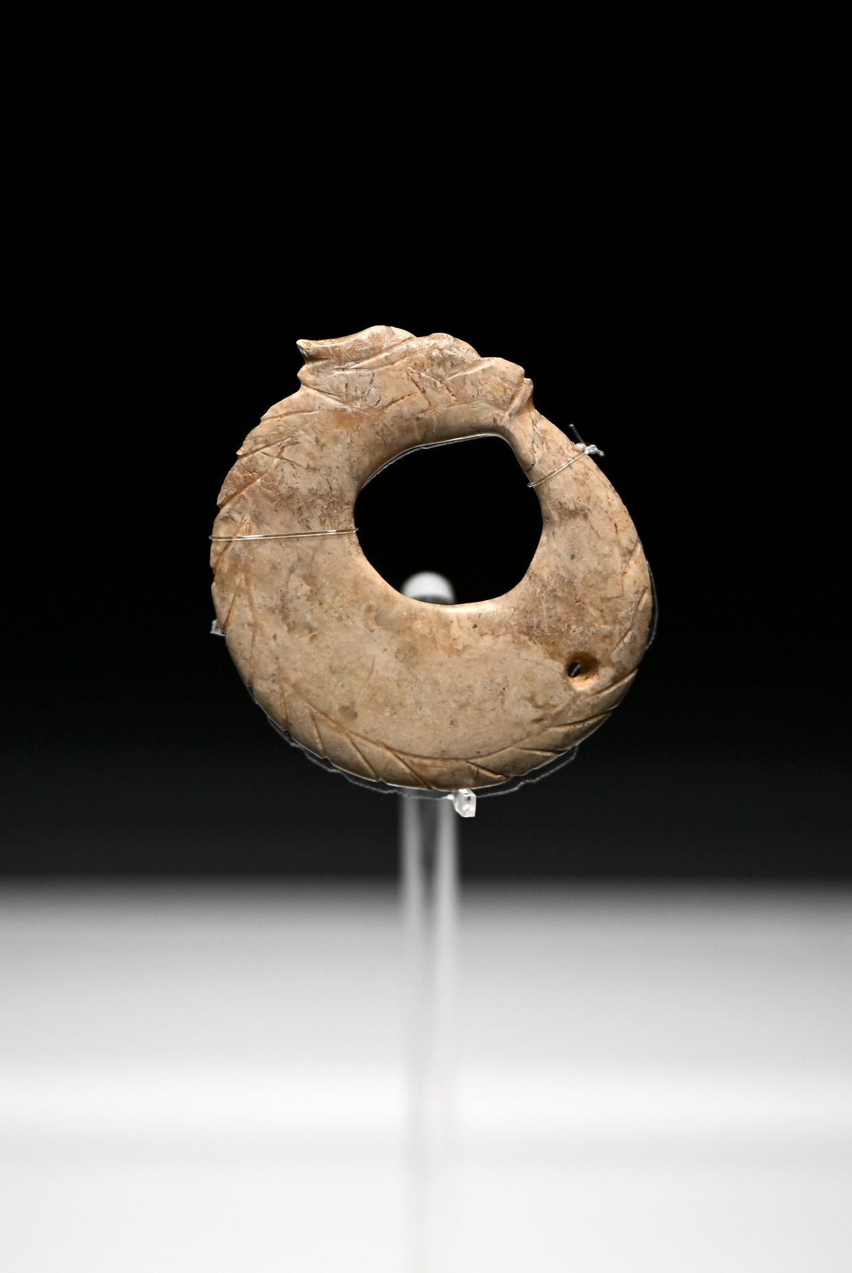 这是凌家滩遗址博物馆展出的玉龙(2025年5月16日摄)。玉龙首尾相衔