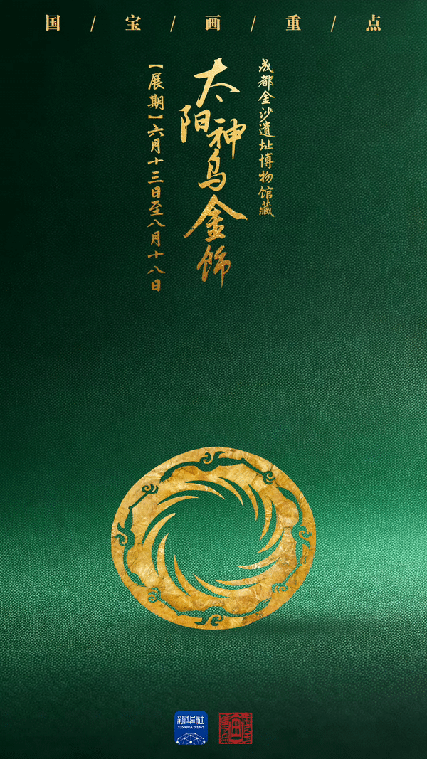 太阳神鸟金饰造型精练、线条流畅