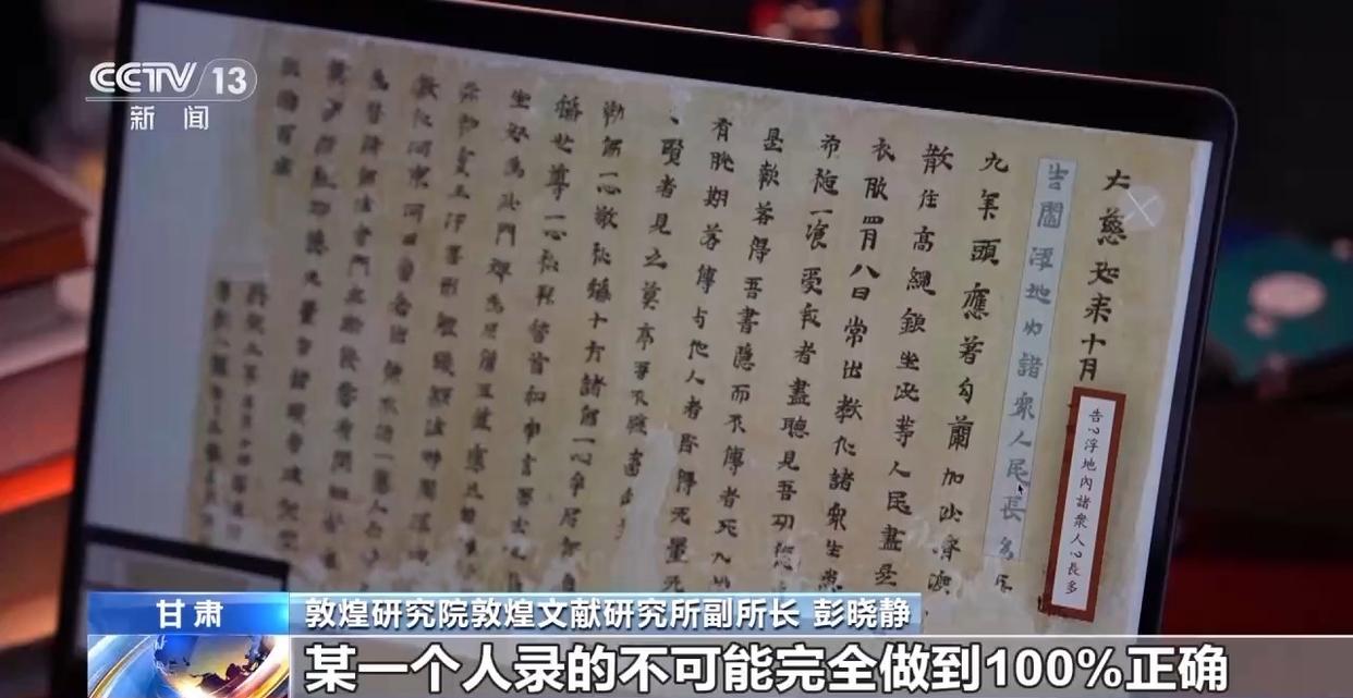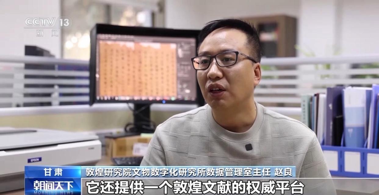 敦煌研究院文物数字化研究所数据管理室主任 赵良:它提供了一个敦煌文献的权威平台,将来可能还有一些其他可移动文物可以通过人工智能等技术结合一些相关的研究成果,实现不同的收藏机构的文献缀合,也可以通过人工智能进行一些文献内容的解读。