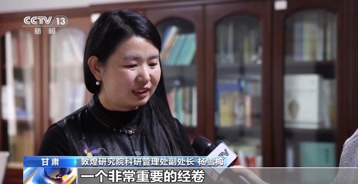 敦煌研究院科研管理处副处长 杨雪梅:这是藏经洞文献里面的一个非常重要的经卷。用数字化的技术实现了收藏在三处的文物数字缀合,去看到文物的全貌。