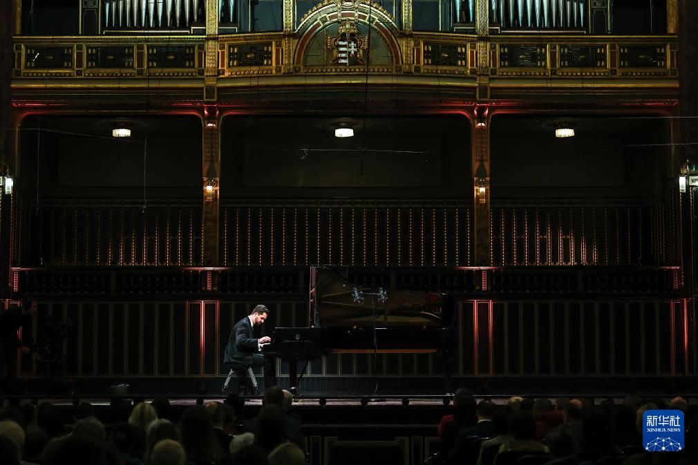2月2日,在匈牙利首都布达佩斯,匈牙利钢琴家科瓦奇·盖尔盖伊在音乐会上演奏。新华社发(鲍洛格·达维德摄)