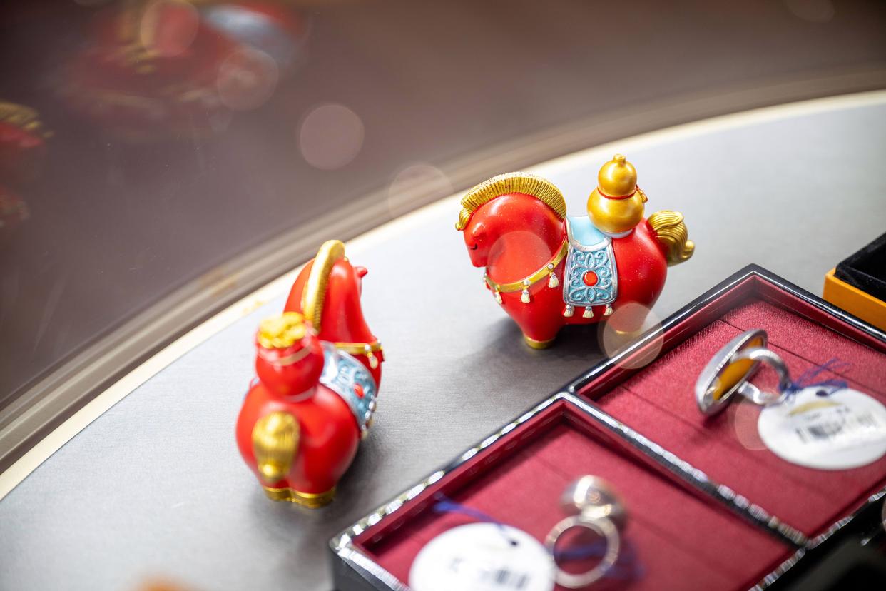 这是在内蒙古博物院的一家文创店内拍摄的马造型摆件(2月7日摄)。新华社记者 连振 摄