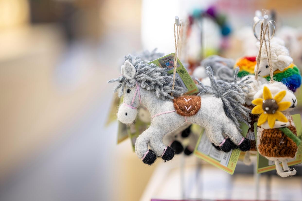 这是在内蒙古博物院的一家文创店内拍摄的马造型挂件(2月7日摄)。新华社记者 连振 摄