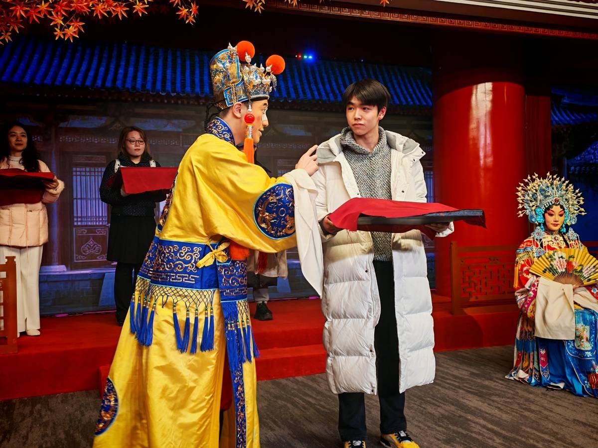湖北日报讯(记者唐雪舟、通讯员刘丽媛、实习生左佳仪)“各位看官,宫门已开,诸君请入!”2月10日下午,在身着古装的“太监”NPC的引导下,一场别开生面的沉浸式汉剧《贵妃醉酒》在武汉人民剧院拉开序幕。该剧改编自经典汉剧剧目《贵妃醉酒》,以沉浸式剧场的方式,带领观众走进那段盛唐往事,科普汉剧常识,在游与乐中感受地方戏曲的魅力。