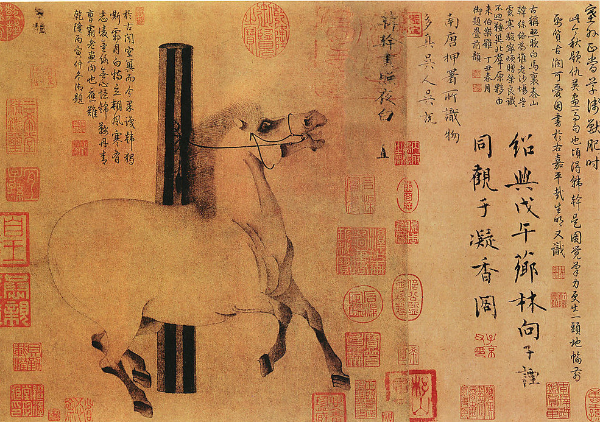 元代是中国画马史上的第三个高峰期。赵孟頫,元代画马大家,并善书法。其一生画了大量以马为题材的作品,如《浴马图》《秋郊饮马图》《人马图》等。