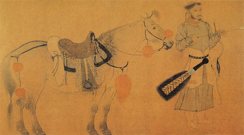 刘贯道,工画马,为一时高手。其作品《元世祖出猎图》结构鲜明,透视准确,线条变化较大,较好地反映出了马的品种特征。
