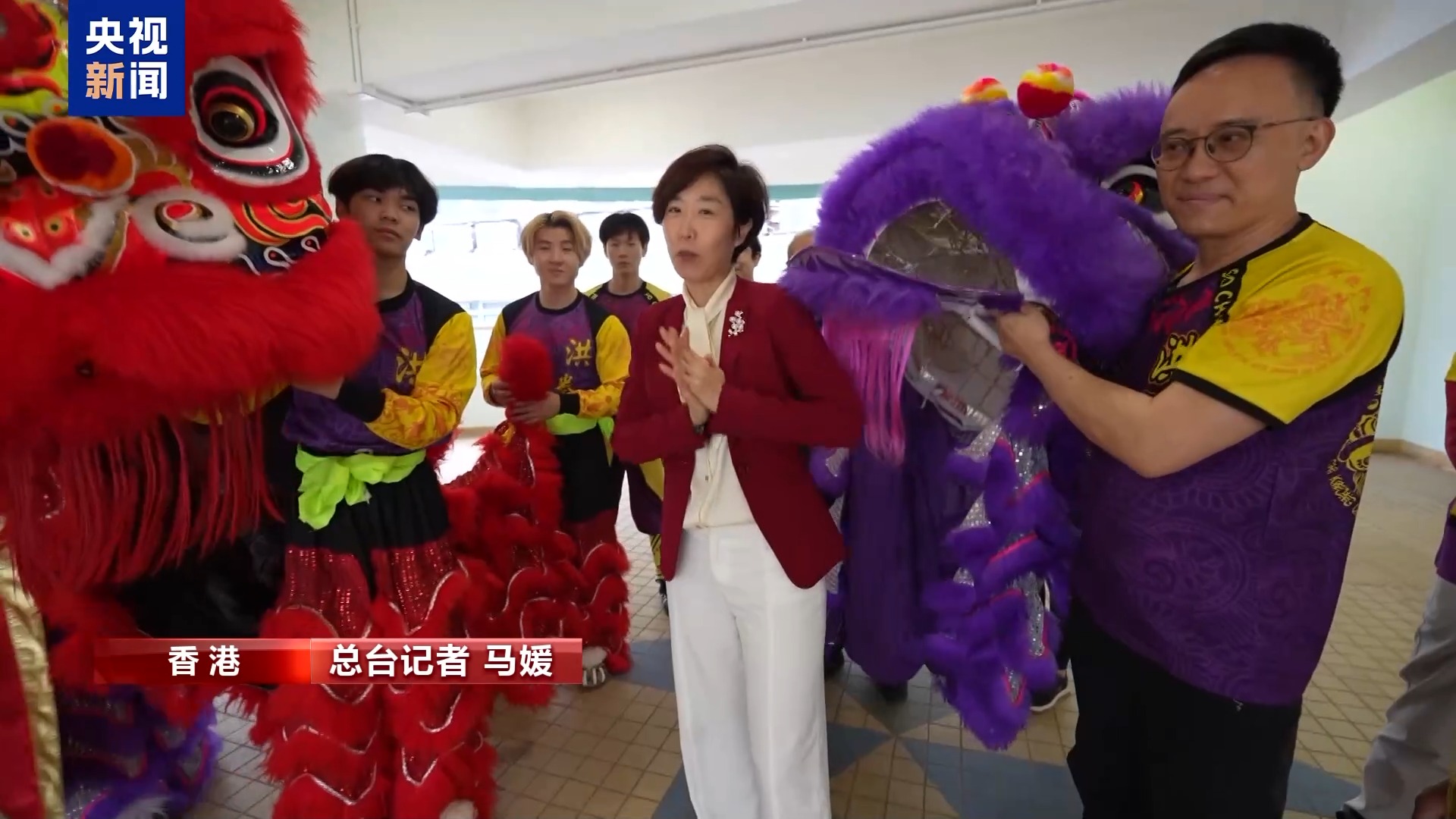 总台记者 马媛:醒狮贺岁,给大家拜年啦!今天我的身份不只是总台记者,同时还是一名舞狮贺岁表演的参与者,今天咱们就借着节目,感受一下香港的舞狮传统并推而广之,这样贺岁方式才更加有意义。