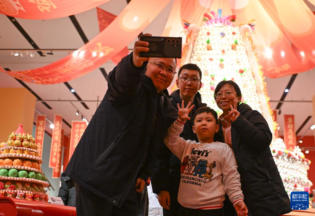 这是2月15日在“过年——丙午春节系列主题展”上拍摄的陕西非遗代表性项目澄城面花作品“大鼓枣山”。新华社记者 陈钟昊 摄