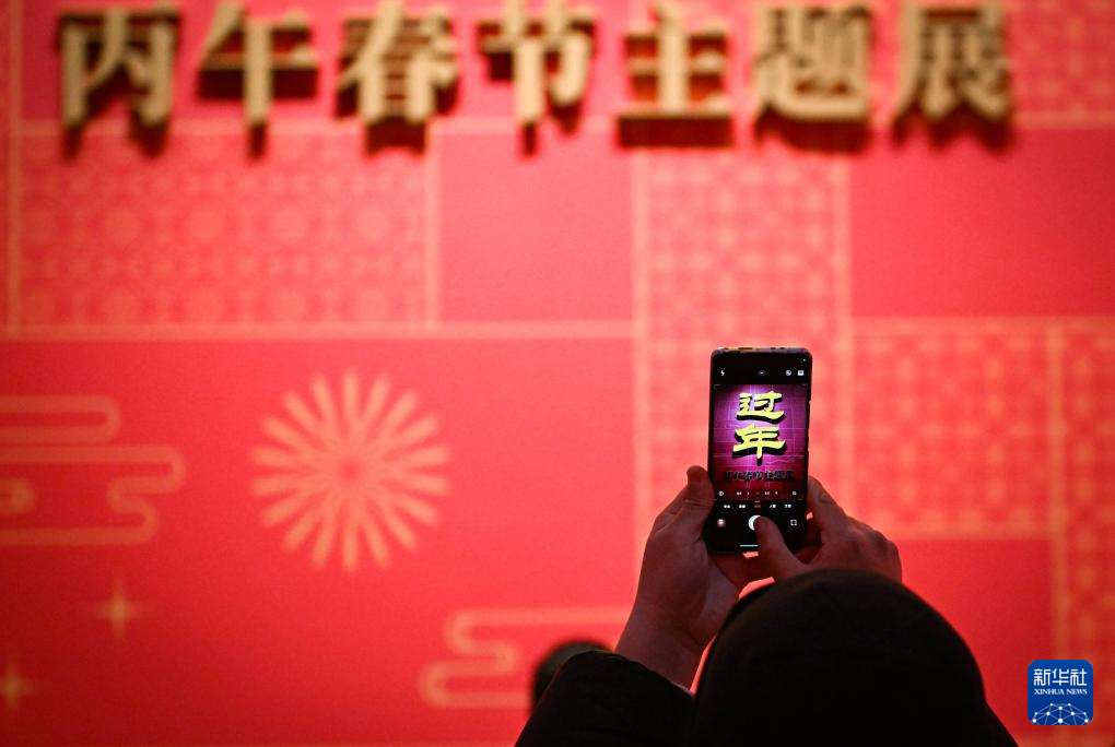 2月15日,观众在“过年——丙午春节系列主题展”上自拍合影。新华社记者 陈钟昊 摄