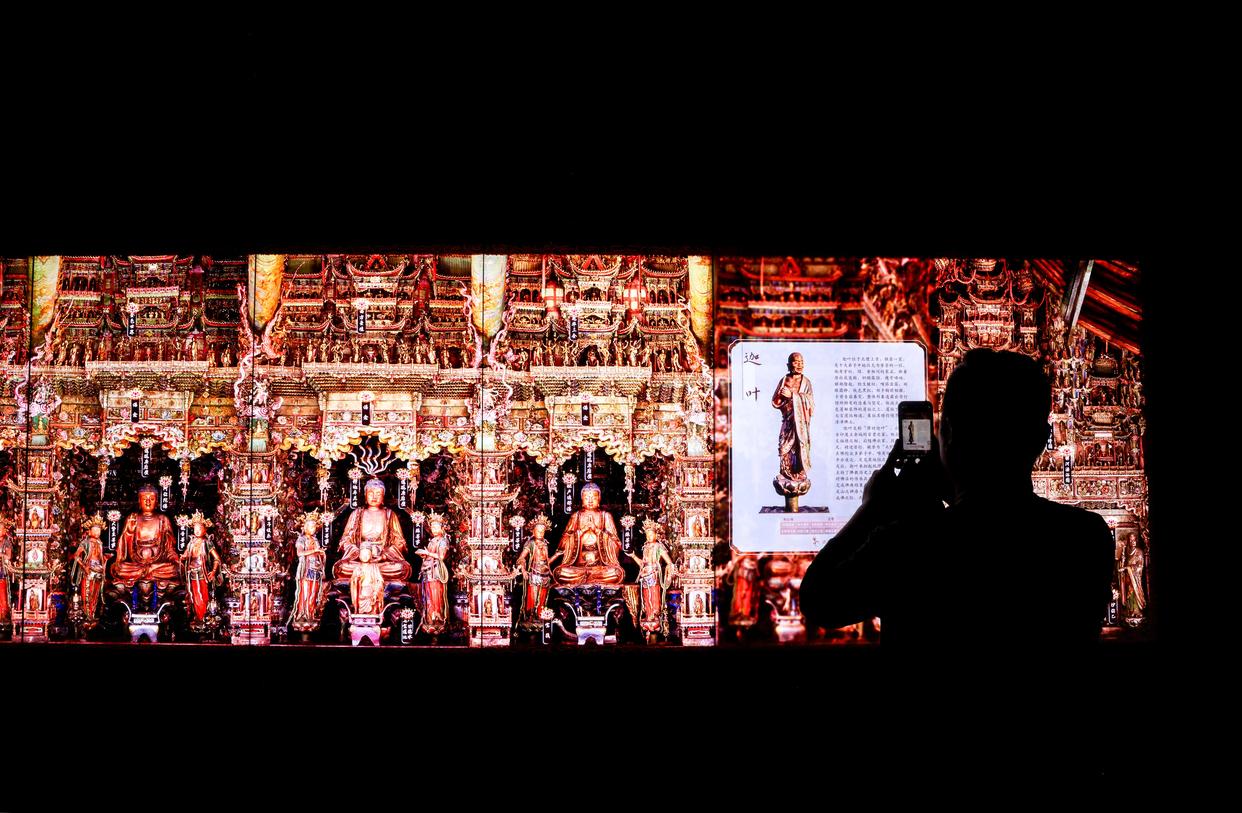 2月27日,参观者在“既往未来——小西天文物撷珍与悬塑艺术特展”的“无量之境”展台拍摄。新华社记者 殷刚 摄