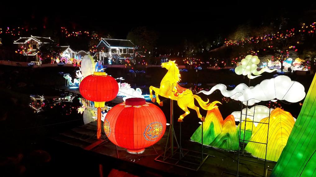这是3月2日拍摄的重庆大足新春灯会策马迎春灯组。(李东 摄)