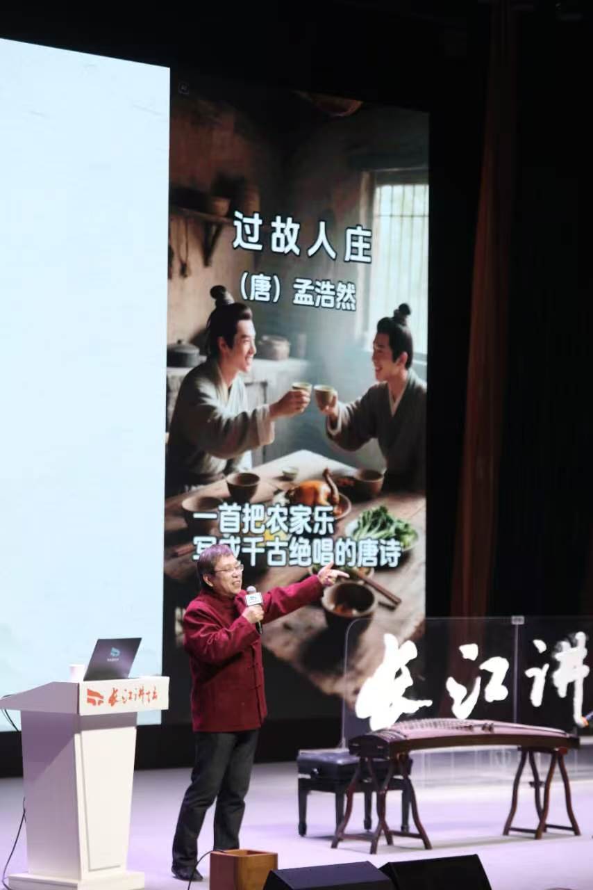在对李孟交游与襄阳故土的解读之后,黄斌将目光投向孟浩然的田园世界,以《过故人庄》为切入点,深度解析其诗歌的艺术精神与成就。作为盛唐山水田园诗派的代表,孟浩然的田园诗清淡自然、意境悠远,开创了以五言短制写隐逸情怀与生活真趣的新风,将山水田园诗从初唐的应制咏物中解放出来,奠定了盛唐田园诗“语淡而味不薄”的审美范式。