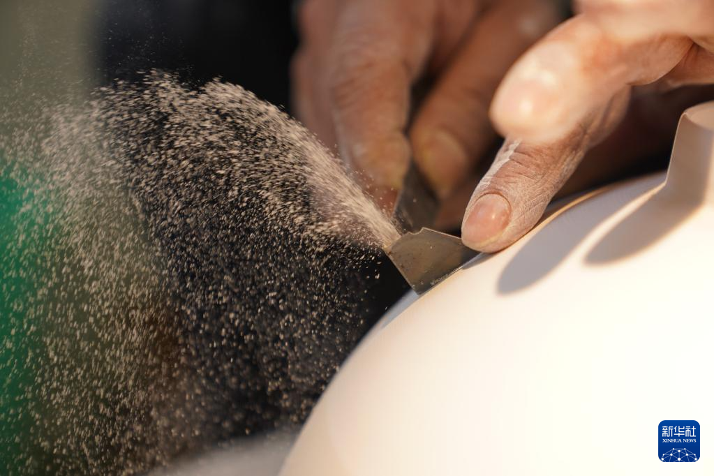 卢建德在进行“利坯”工序(3月10日摄)。新华社记者 周密 摄