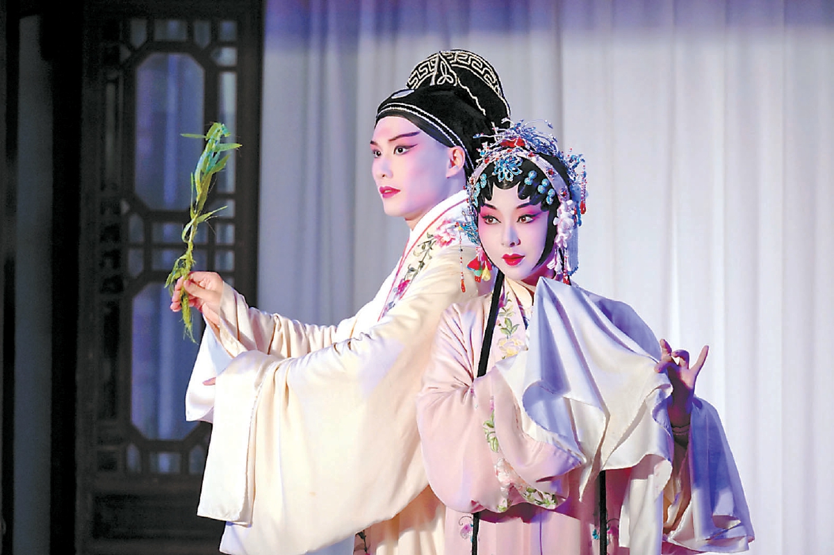 一个多小时的演出中,观众眼前是不变的园林空间,而感性上则完全融入剧中演绎的时间与景物。蜿蜒曲折的园林造景,与“无声不歌,无动不舞”的美学意境共生共通。表演与空间既可动观,亦可静观,戏曲的“移步换景”与园林的“曲径通幽”具有同等审美趣味。