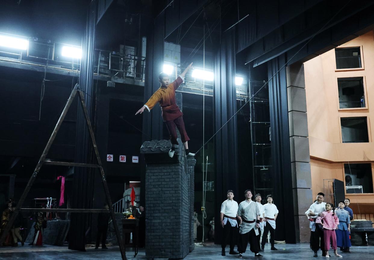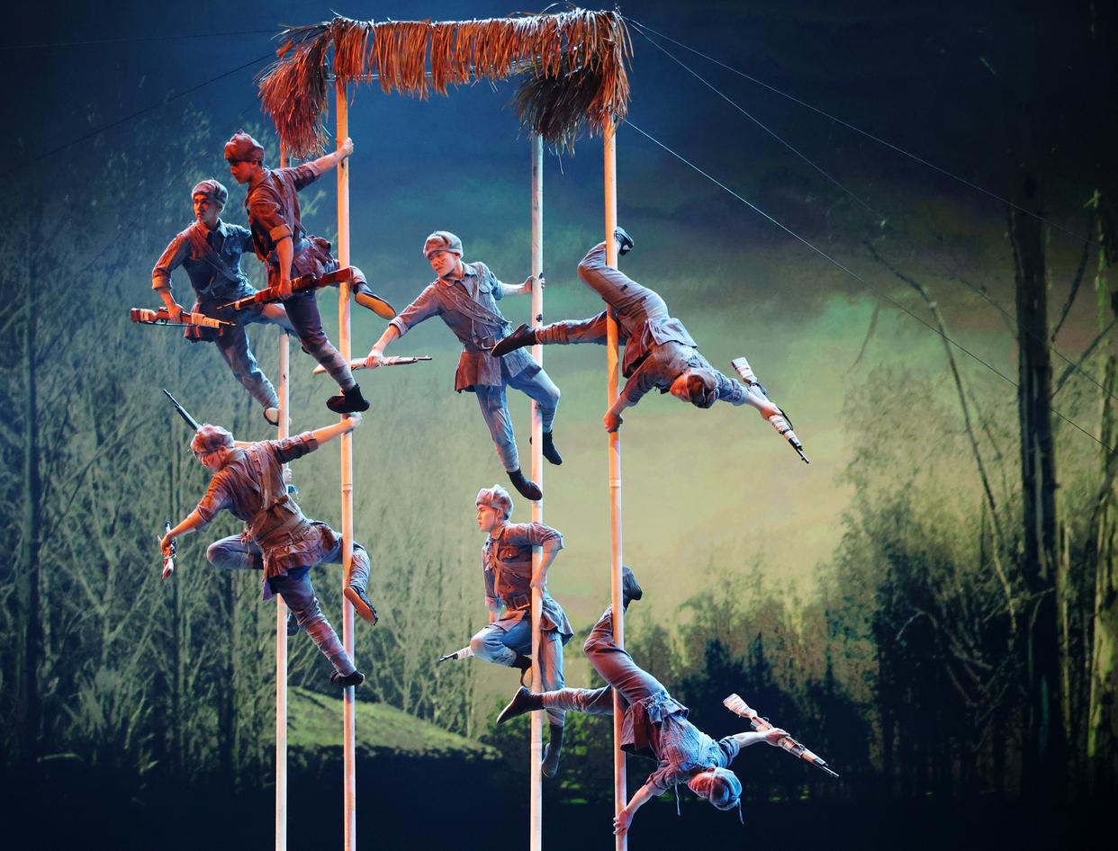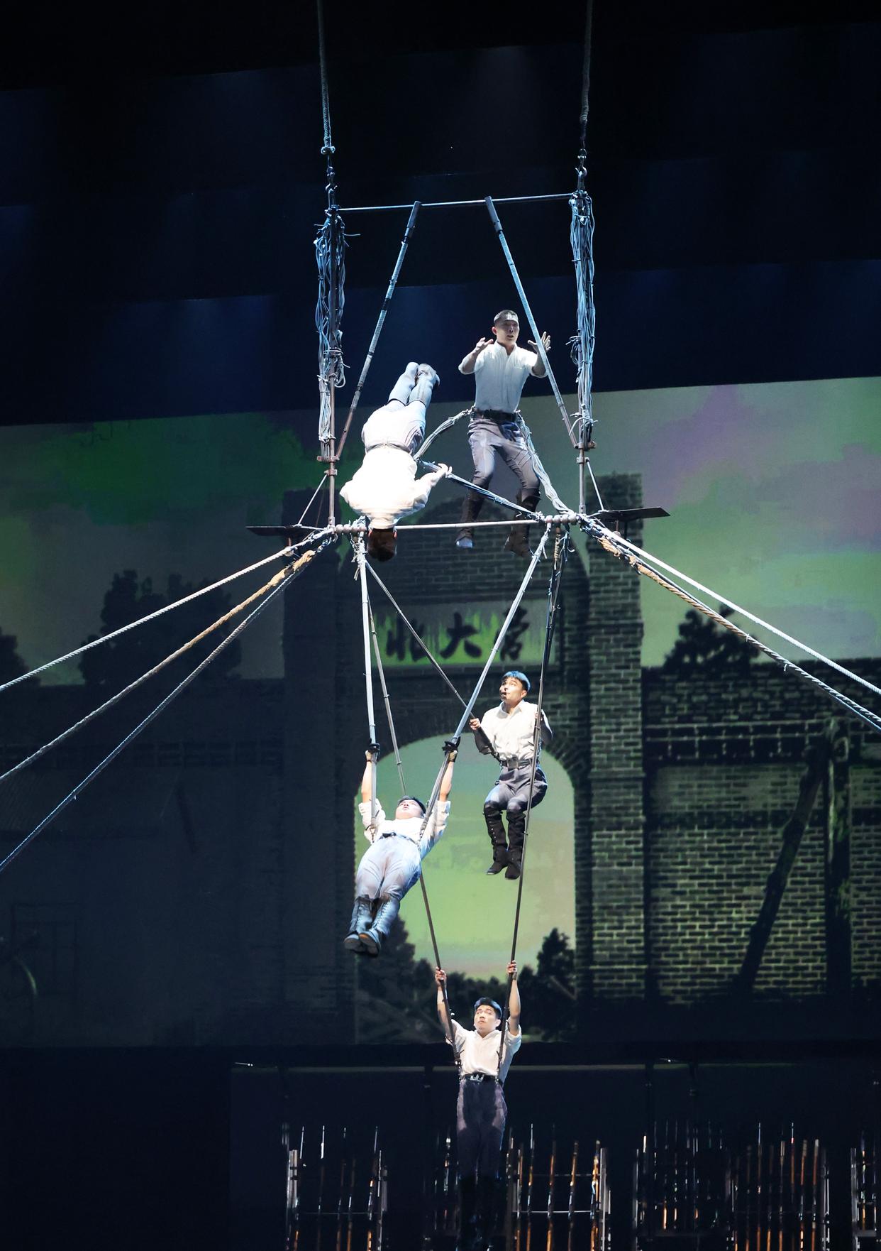3月27日,演员在杂技剧《先声》中表演。新华社记者 李钢 摄