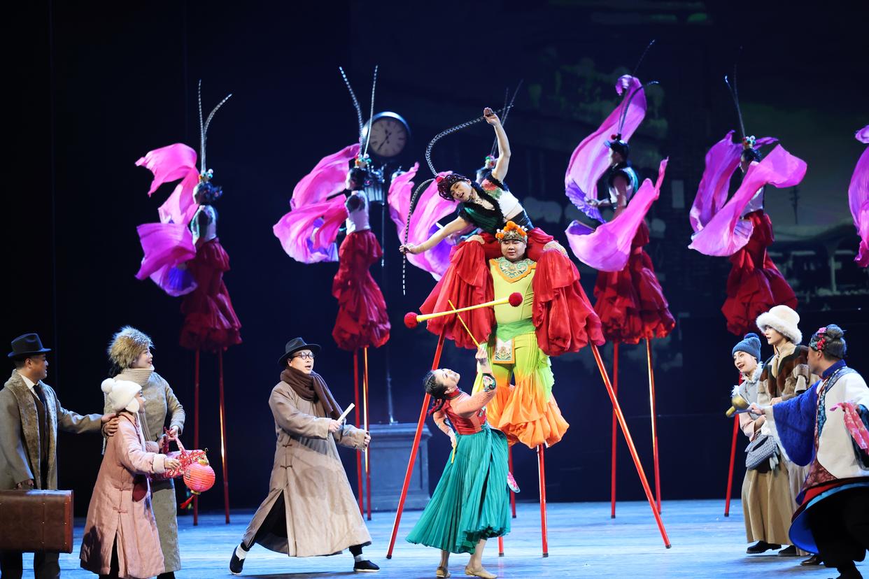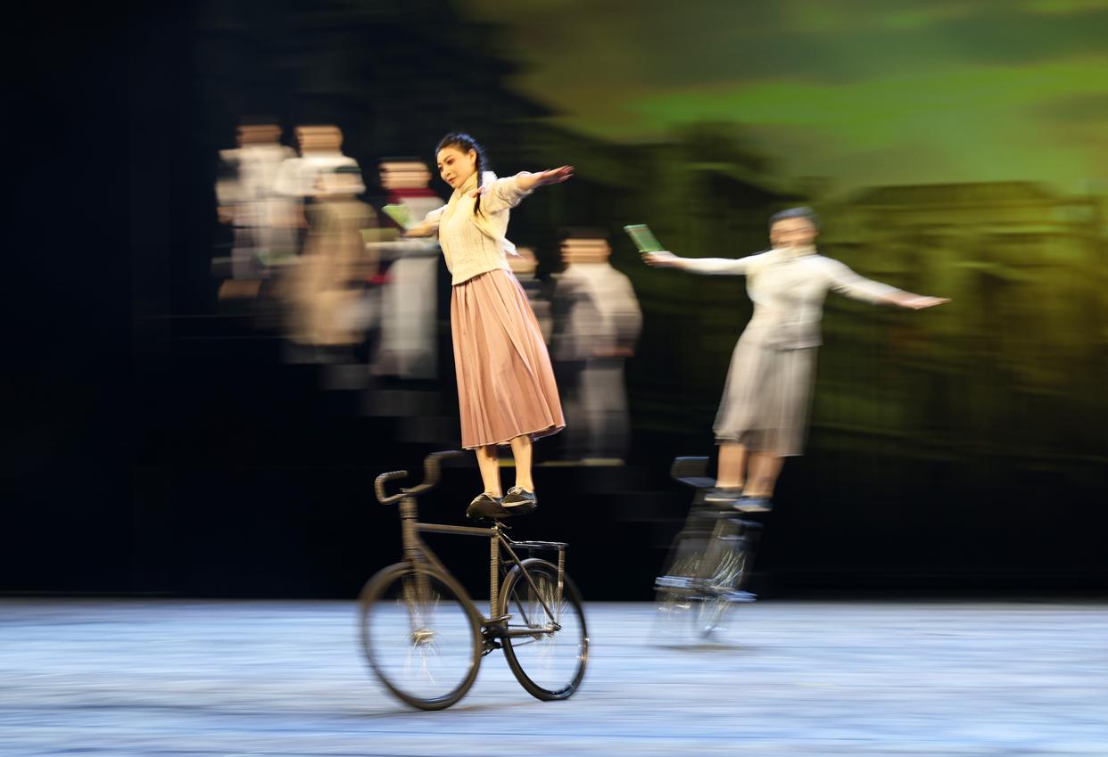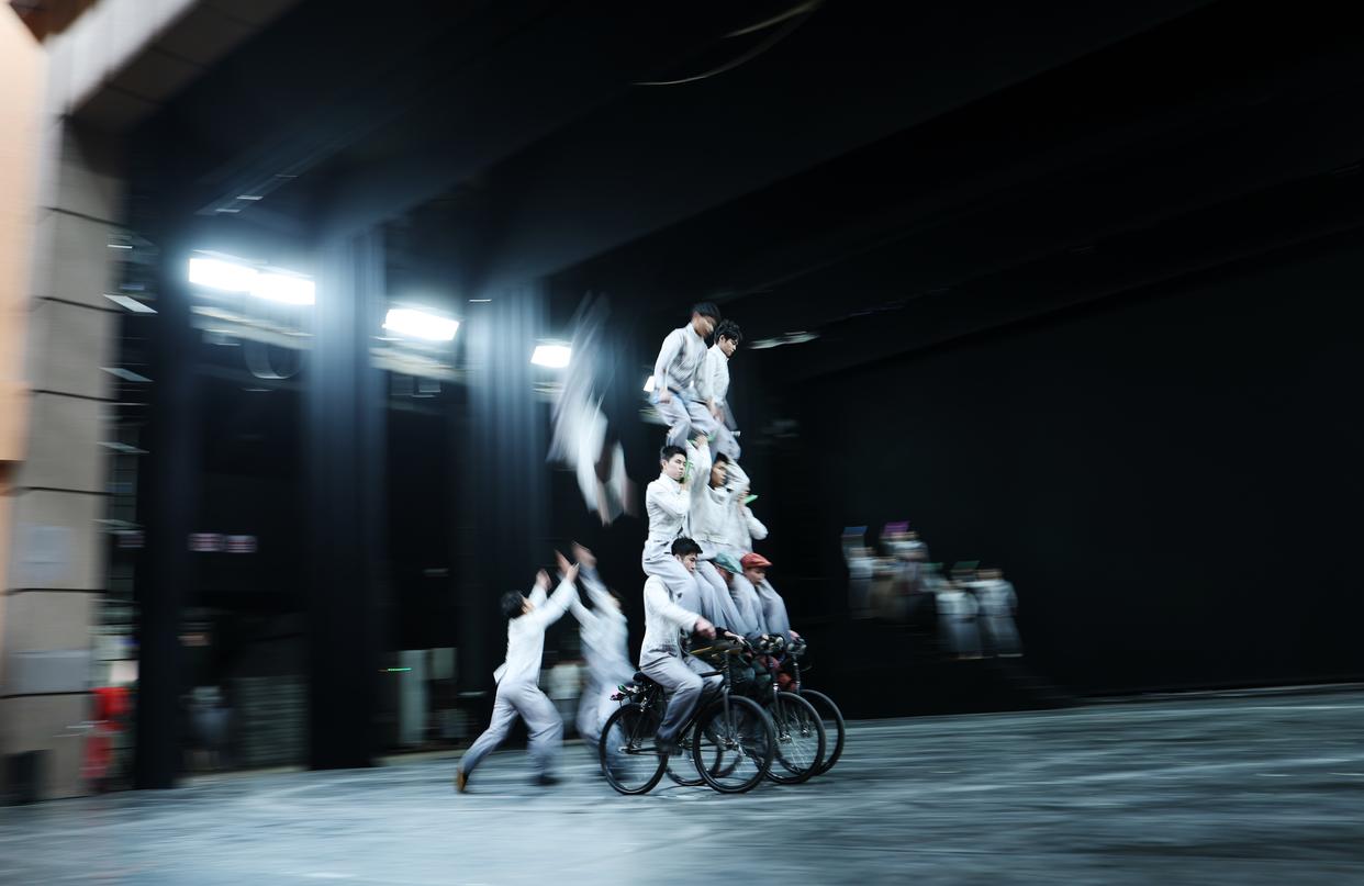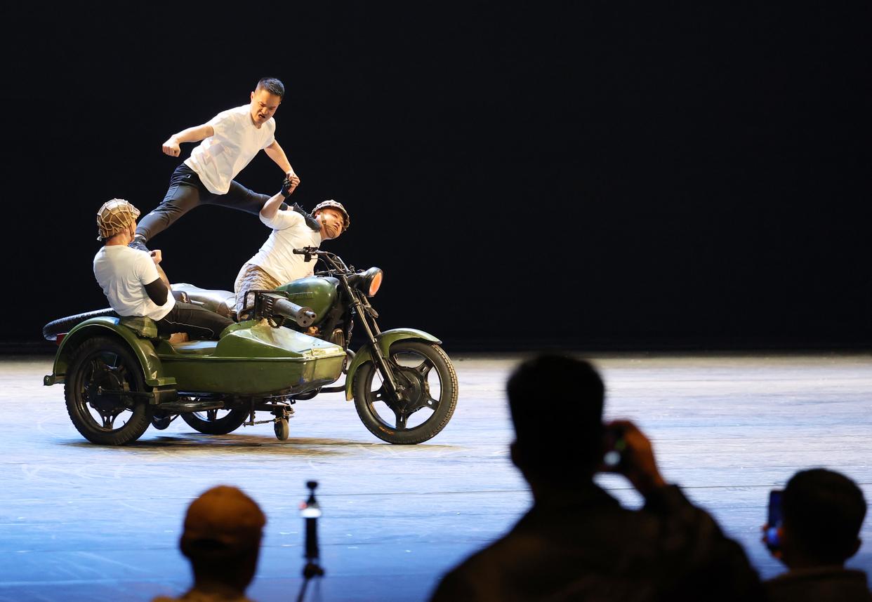 3月27日,演员在杂技剧《先声》中表演。新华社记者 李钢 摄