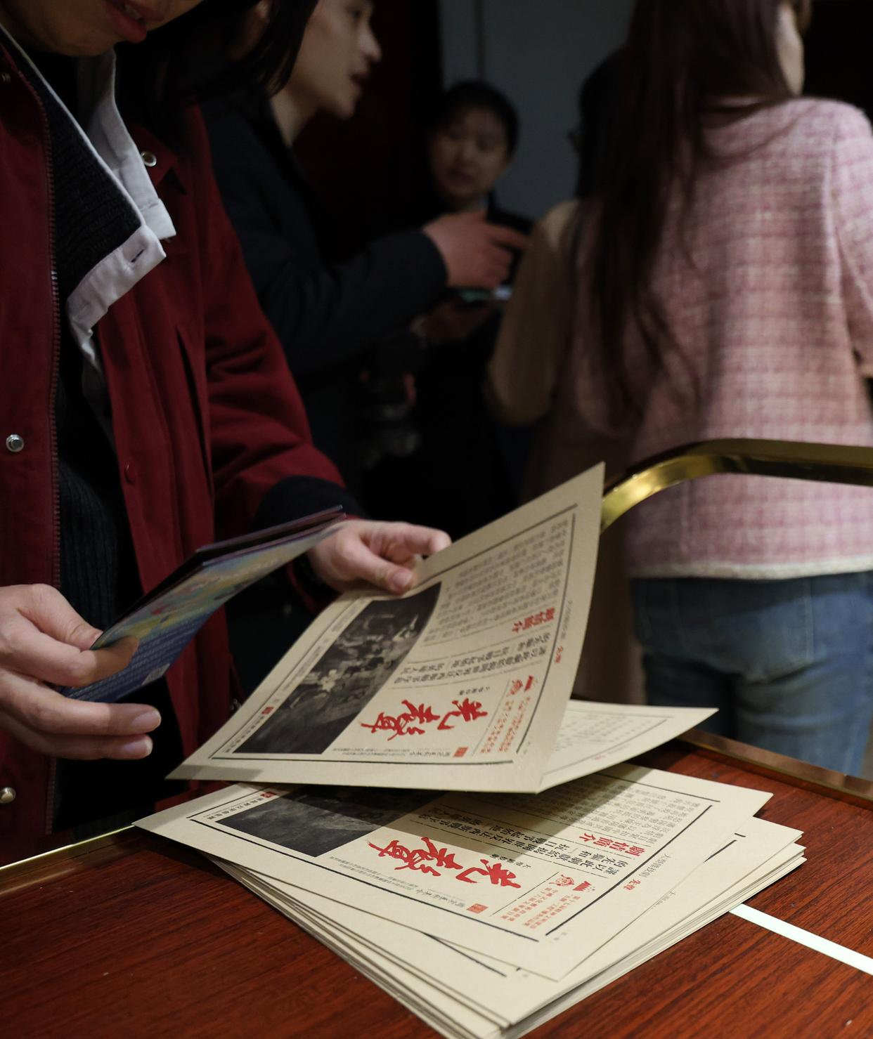 3月27日,观众入场前领取节目介绍。新华社记者 李钢 摄