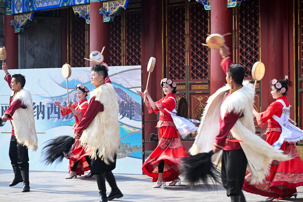 3月30日,演员在开幕式上表演纳西族勒巴舞。新华社记者 金良快 摄