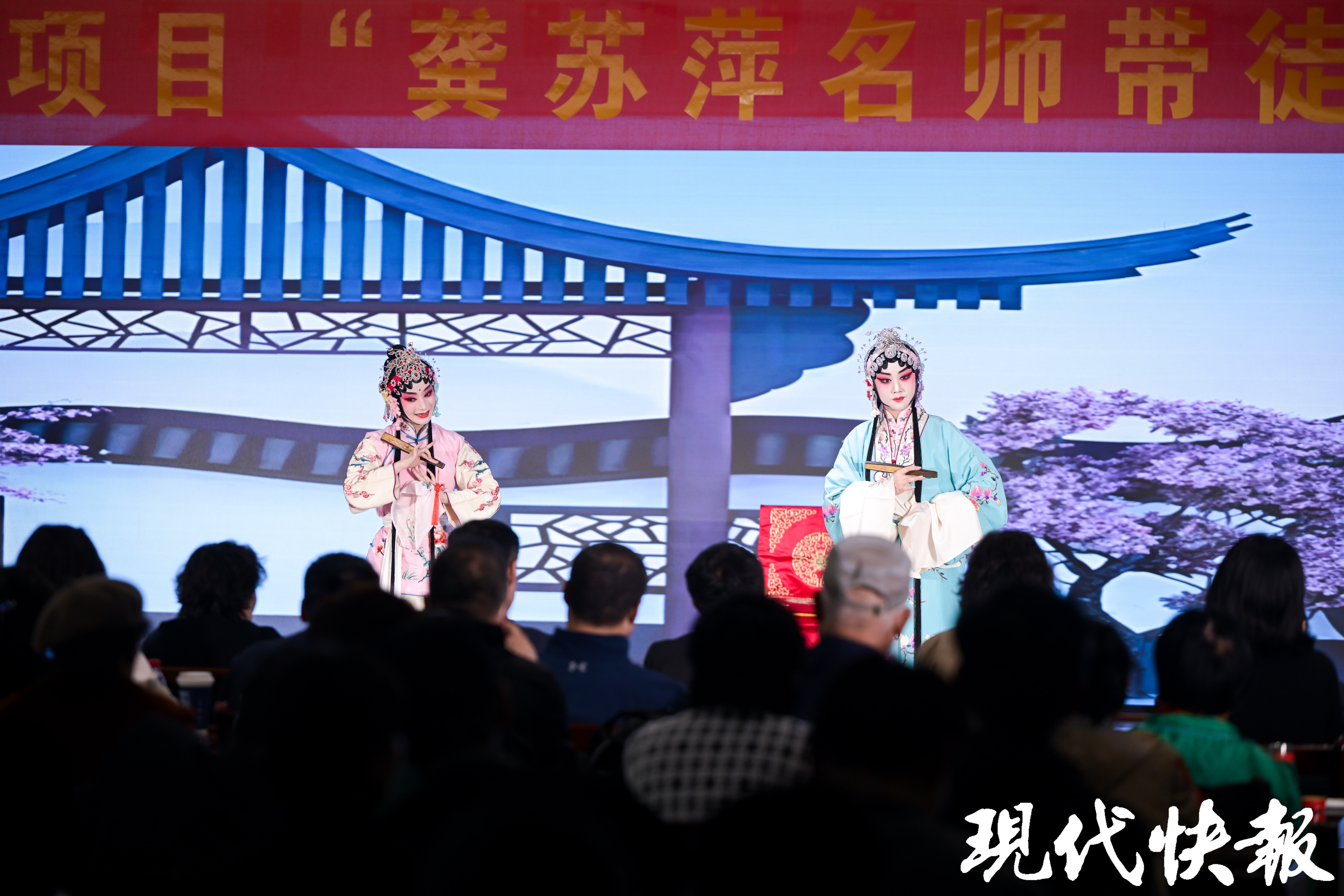 现代快报讯(通讯员 鼓轩 记者 杜雪迎)“京剧艺术繁荣发展需要年轻力量。”3月31日下午,南京文化人才资助项目“龚苏萍名师带徒计划”结项汇报演出在鼓楼区举行。汇报演出集中展示了著名京剧表演艺术家龚苏萍的“名师带徒”教学成果,荀派经典剧目《卖水》选段、荀派名剧《棒打薄情郎》等精彩上演。