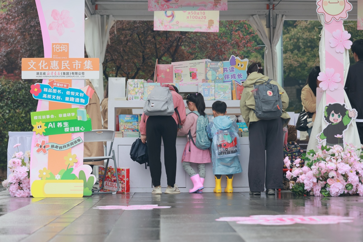 现场同步推出600余种文创好物,融合樱花春日美学、荆楚非遗技艺、AI 健康生活等元素,樱花主题伴手礼、特色茶歇、植物拓印等产品深受追捧,让书香文化可感可触、可赏可藏。