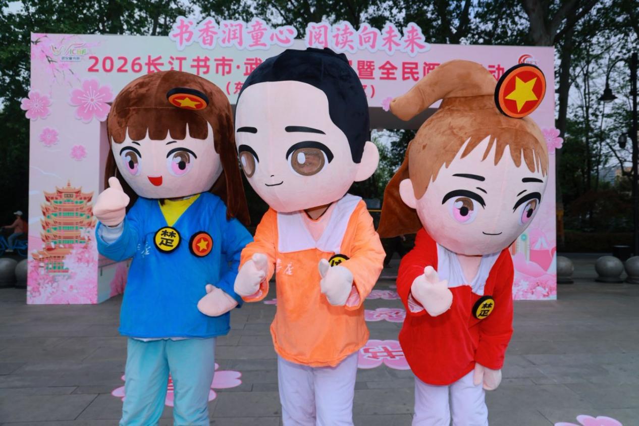 湖北新华书店原创IP楚小新、楚小华、倍小阅现场人气拉满,身着特色服饰的人偶与市民互动合影,引得大小朋友争相驻足,现场欢声笑语不断,童趣与暖意交织。