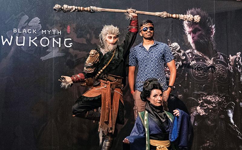 人们在 2024 年科隆国际游戏展《黑神话 :悟空》拍照区拍照(2024 年8 月 22 日摄) 张帆摄 / 本刊