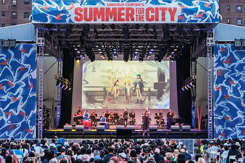 人们在美国纽约林肯艺术中心“上海日”活动上欣赏《明日方舟》露天音乐会(2025 年 7 月 26 日摄) 新华社发(章正浩摄)
