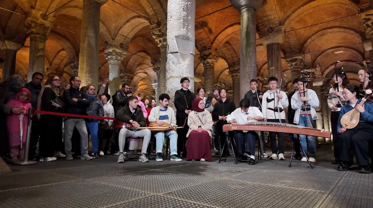 一场中国民族音乐快闪活动22日在土耳其伊斯坦布尔的著名景点地下水宫上演。