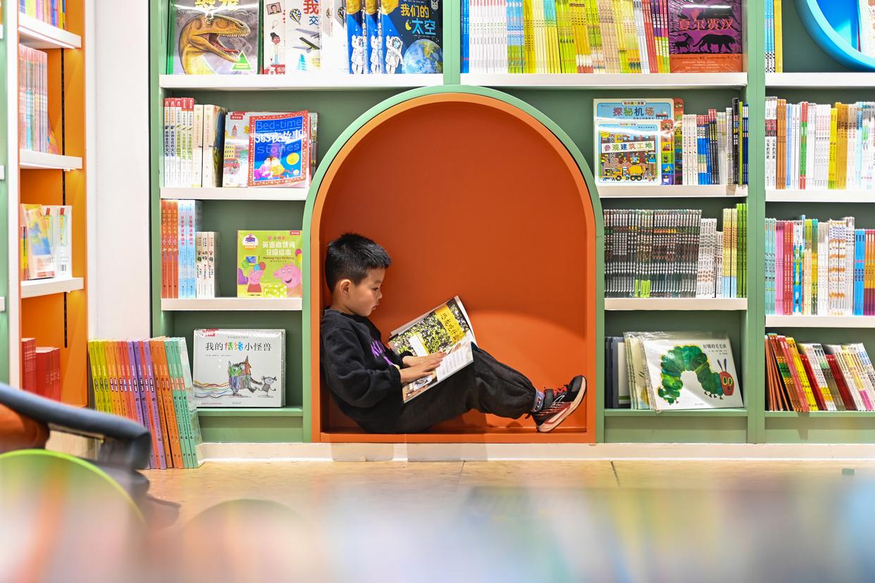 ↑2026年4月2日,一名小朋友在山东省青州市一家书店内阅读书籍。CICPHOTO/王继林 摄