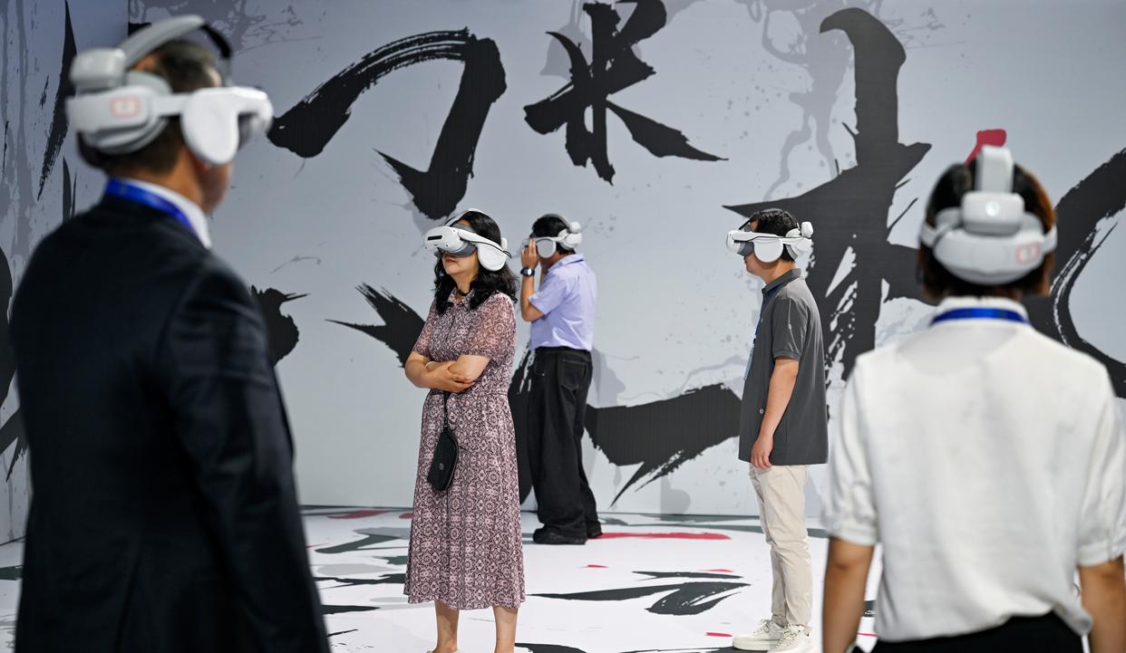 中国电影科技企业展示“一人千面”AI技术。新华社记者 陈诚 摄