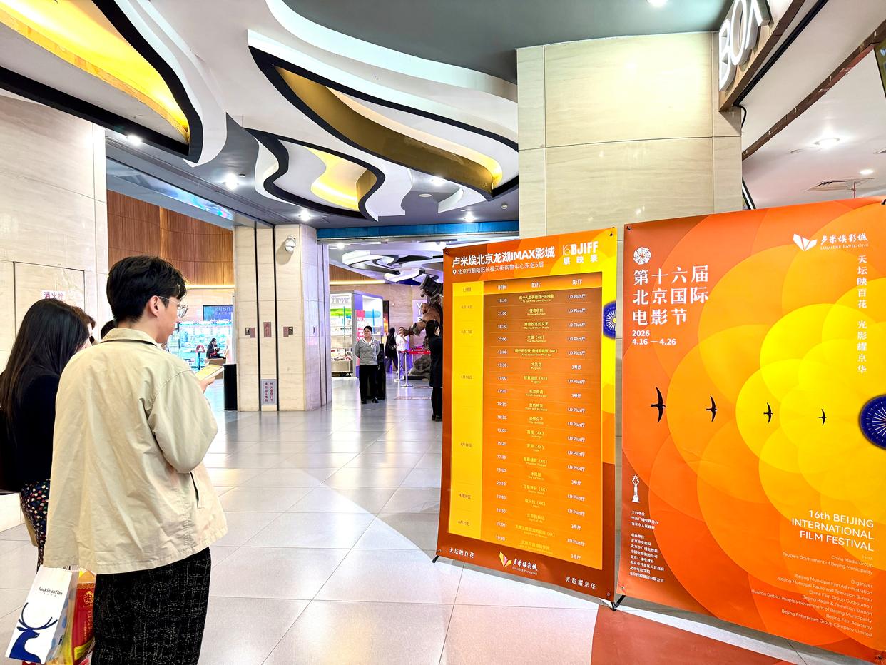 观众在查看北影节排片。新华社记者 邢拓 摄