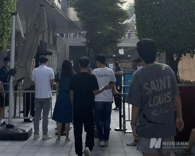 深圳益田假日苹果直营店门口,排队购买iPhone14系列的消费者。图片来源:每经记者