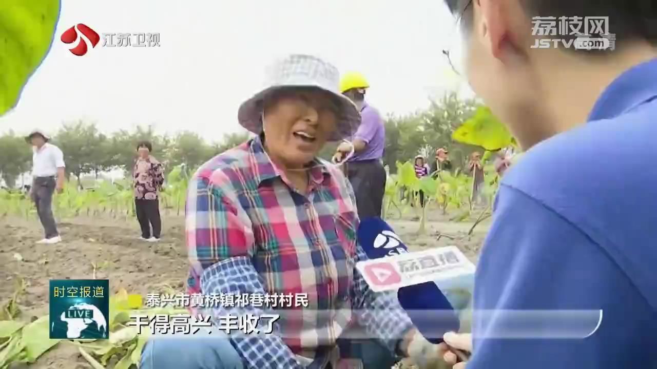 江苏台记者吴迎旋:我现在所在的位置是泰兴市黄桥镇祁巷村,这里1000亩香荷芋正在丰收。