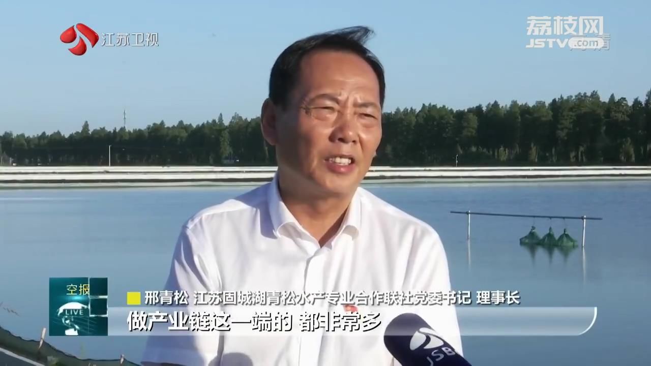 江苏固城湖青松水产专业合作联社党委书记理事长邢青松说:“螃蟹产业也是我们高淳区的一个富民产业,因为涉及面广,我们的养殖人员,包括我们做包装的,做渔网的,做产业链这一端的,都非常多,目前来讲,这个产业链是带动十几万人。”