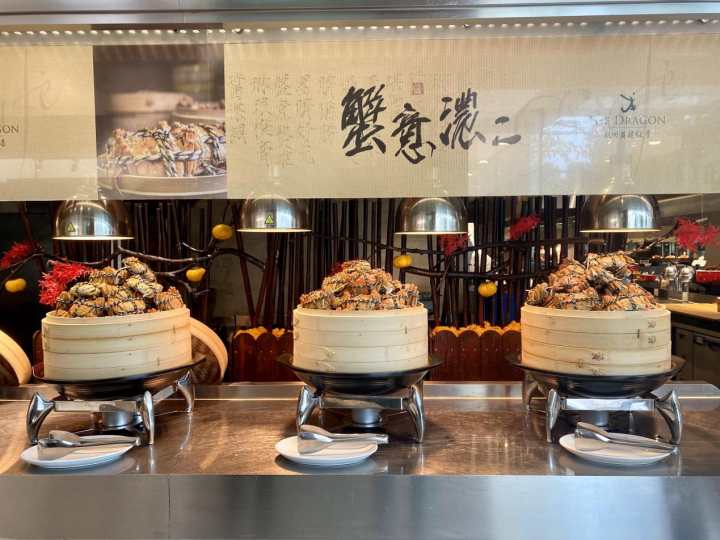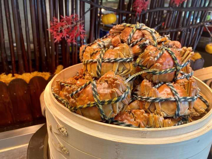 钱江晚报·小时新闻记者看到,餐厅已是“蟹意浓浓”,新鲜出锅的大闸蟹,被整整齐齐地摆在了餐区最显眼的位子。
